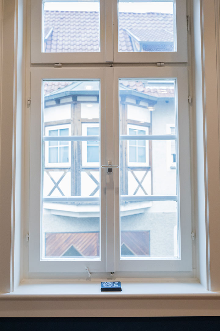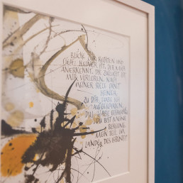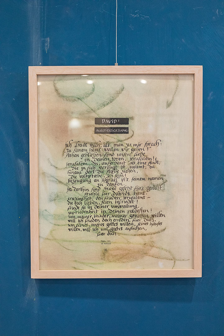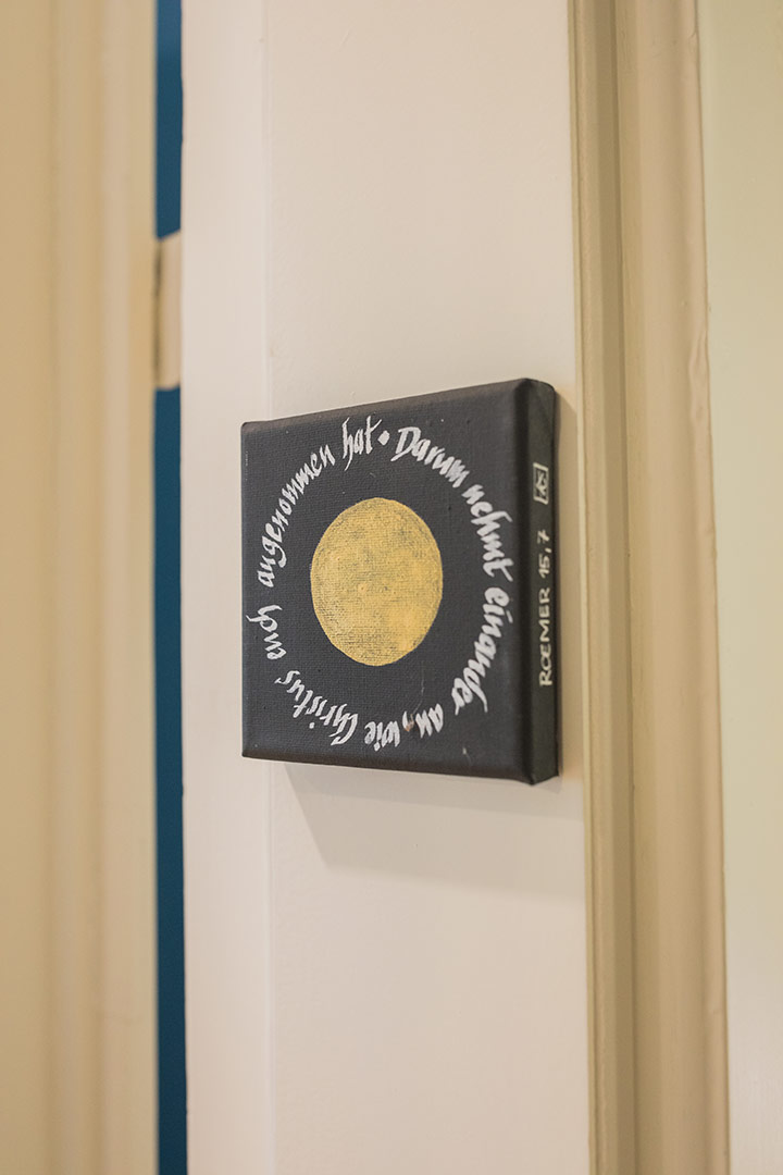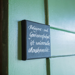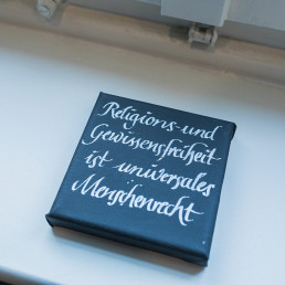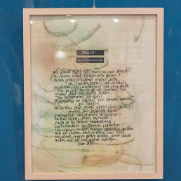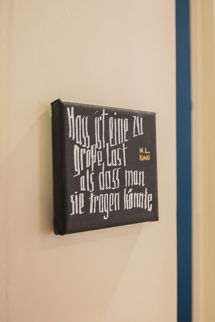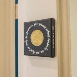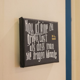 Entstanden sind haptisch erfahrbare Textstücke, äußerlich ähnlich den bekannten Stolpersteinen, aber in der Farbgestaltung umgedreht. Sie erinnern auch an eine Mesusa, wie sie in jüdischen Häusern am Türrahmen angebracht sein kann. Diese trägt Textstücke aus der Thora in einer Kapsel, zur Stärkung für den, der aus dem Haus geht.