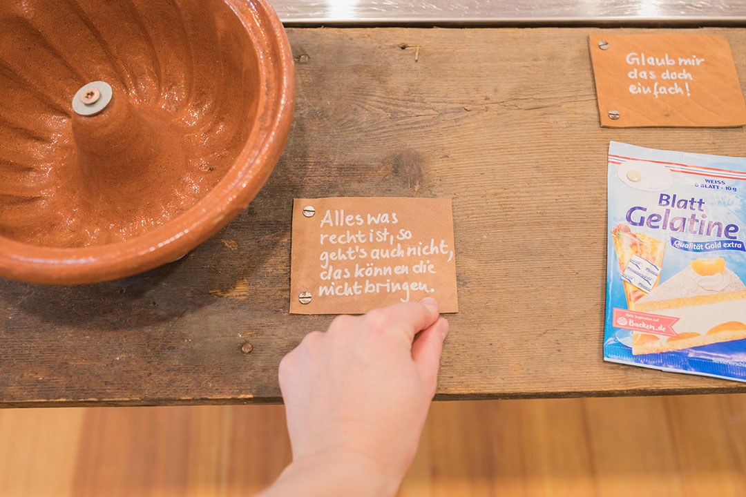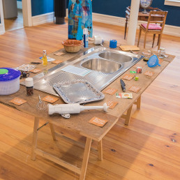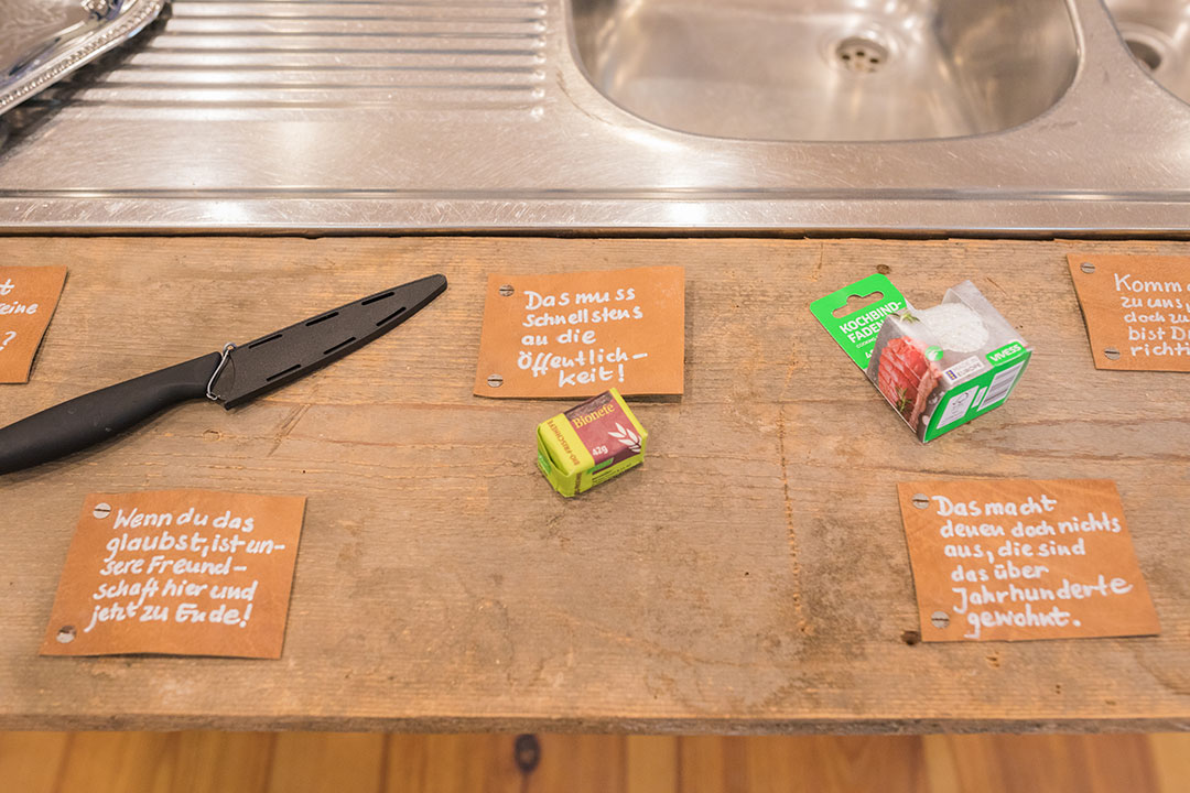 Umsetzung mit Küchenutensilien, Instrumenten und unseren Stimmen.