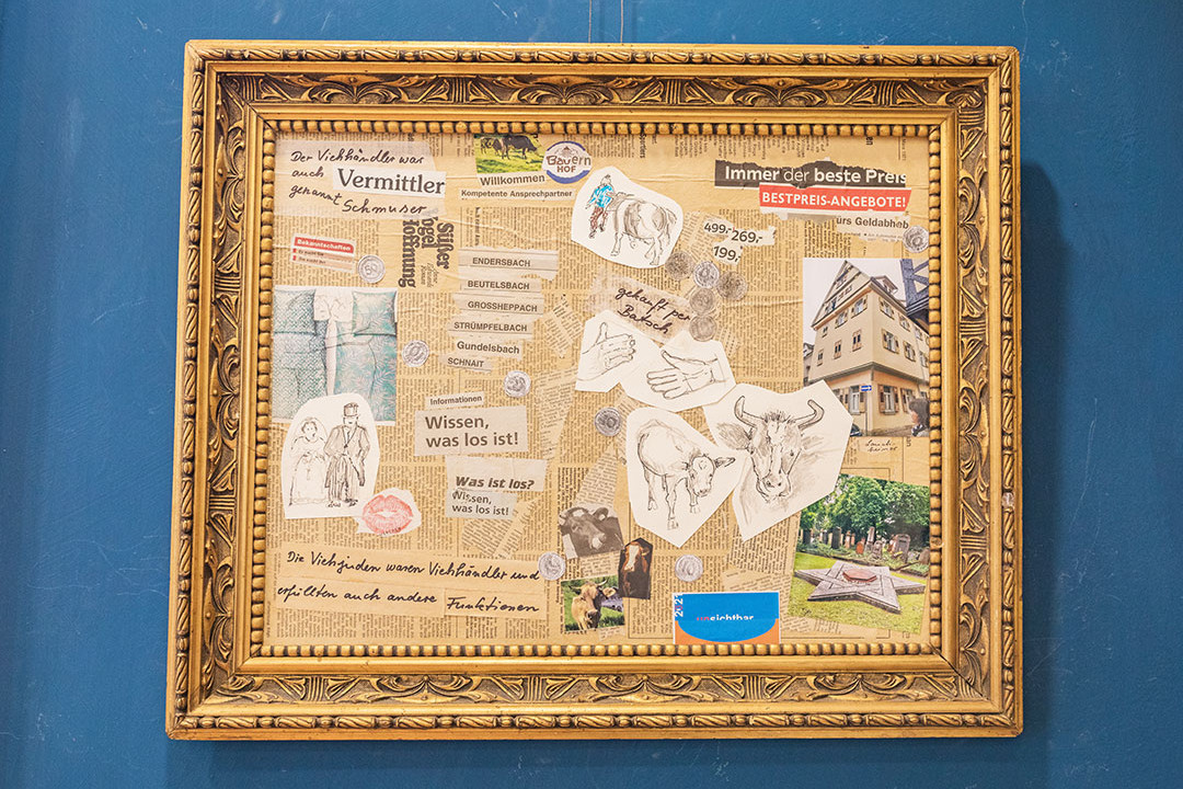 Sie waren Viehhändler, erfüllten aber auch andere Funktionen und verdienten damit ihr Geld. (Im Bild dargestellt durch „der Taler rollt immer“.) Sie halfen auch aus finanziellen Engpässen und verliehen Geld. Dieser Geldverleih hat einigen Juden zu großem Reichtum verholfen. Im Bild sieht man ein stattliches jüdisches Wohnhaus und der prunkvolle goldene Rahmen soll auch auf diesen Reichtum hinweisen.